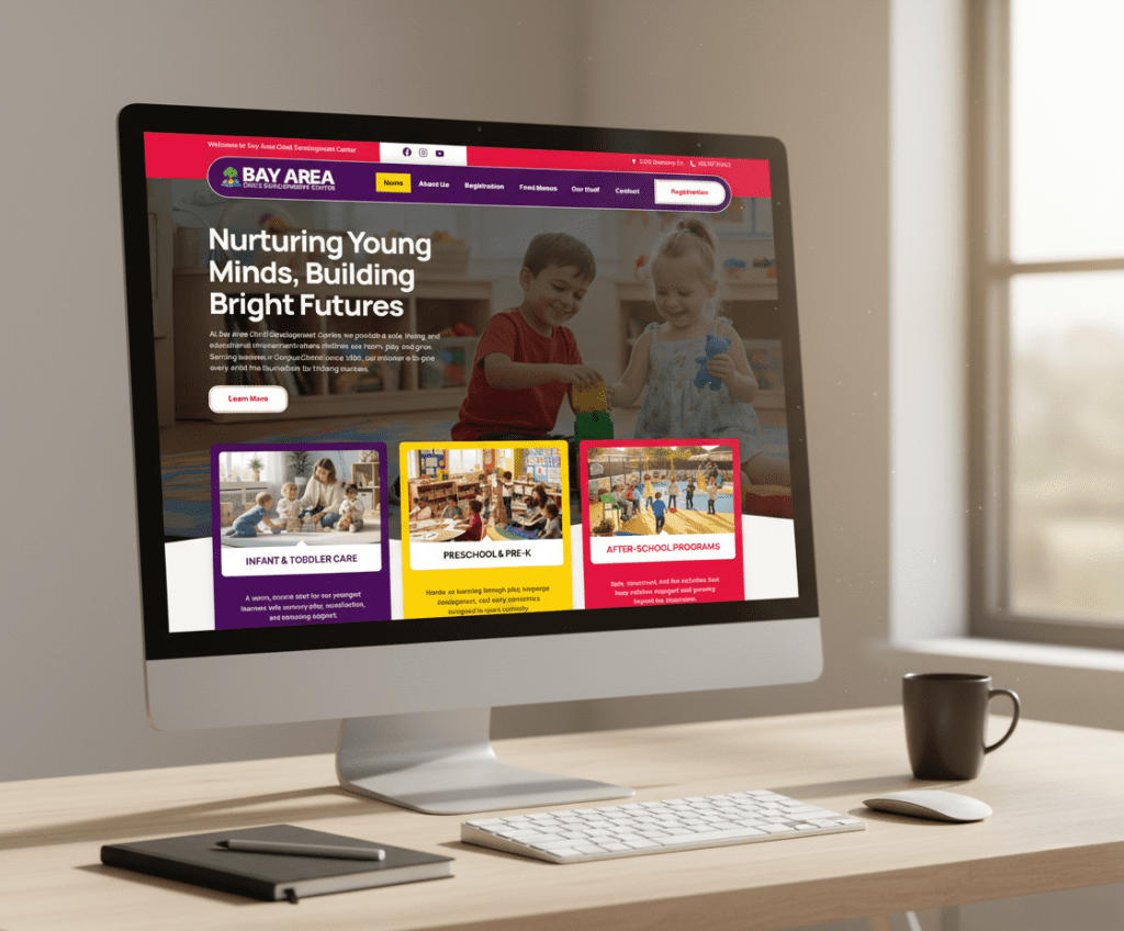 Monarque Marketing partnered with Bay Area Child Care Development Center to refresh their online presence with a modern website and new brand photography. The redesign highlights their nurturing environment, showcases their programs more clearly, and helps families easily connect with the right childcare option, all while giving the brand a professional, approachable look that builds trust.